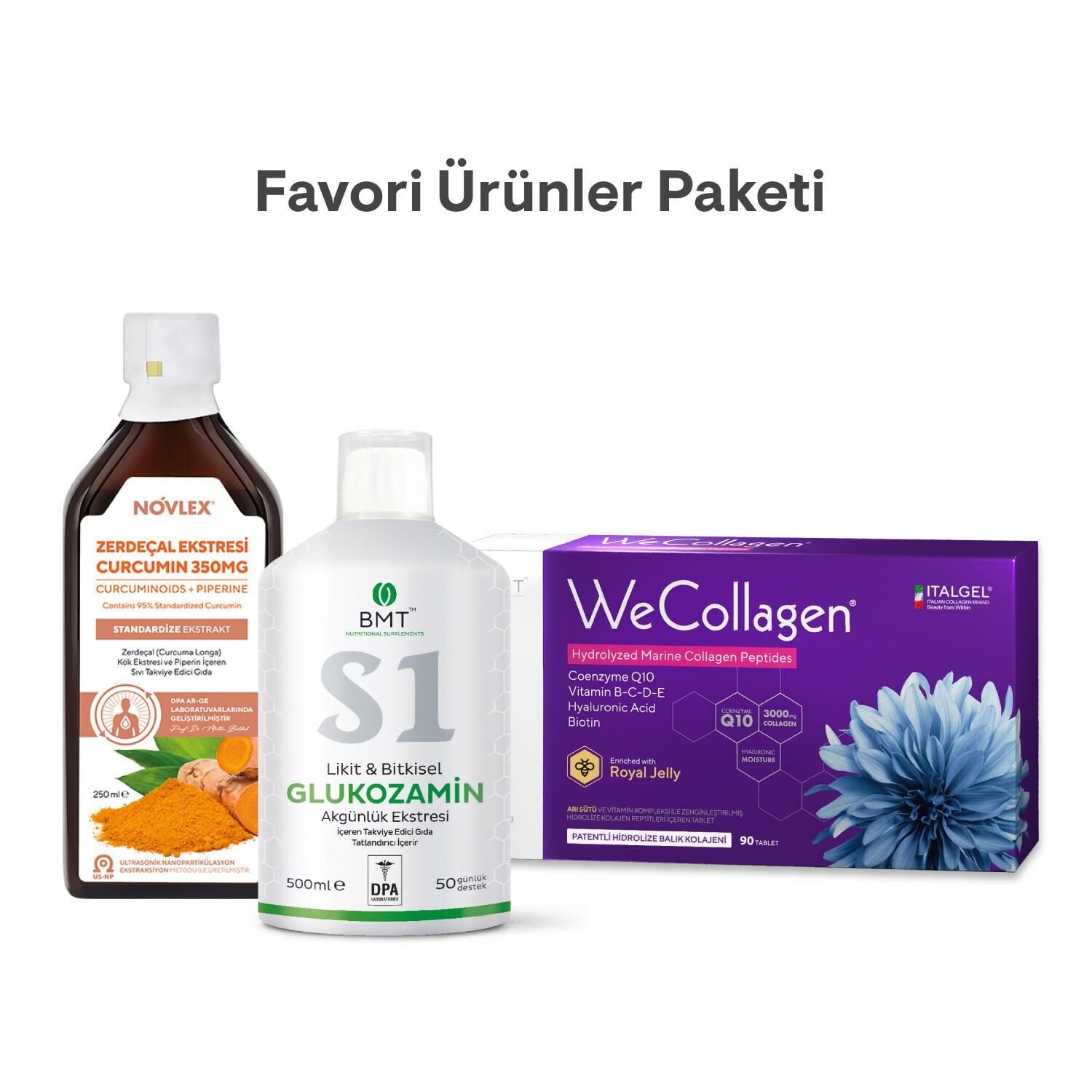 İçindekiler: Hidrolize Kolajen Peptitleri , Hacim Artırıcı (Mikrokristalin Selüloz), Hyaluronik Asit, L-Aksorbik Asit (Vitamin C), Arı Sütü, Polivinilpirolidon, Kollajen Tip 2 (Doğası Değiştiril[1]memiş), Çapraz Bağlı Sodyum Karboksi Metil Selüloz, Topaklanmayı Önleyici(Yağ Asitlerinin Magnezyum Tuzları), Çinko Sülfat, Vitamin E (DL-alfa-tokoferil asetat), Silikon Dioksit, Bakır Sülfat, Koenzim Q10, Vitamin D (Kolekalsiferol), Vitamin B5 (D-pantotenat, kalsiyum), D-Biotin, Vitamin B6 (Pridoksin hidroklorür), Sodyum Selenit.