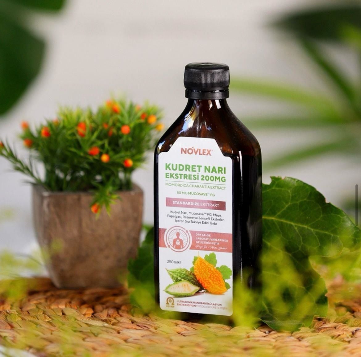 Novlex® Kudret Narı (Momordica), Rezene, Mayıs Papatyası, Mucosave FG ve Zencefil Ekstraktı (Ekstresi) İçeren Sıvı Takviye Edici Gıda 250 ml